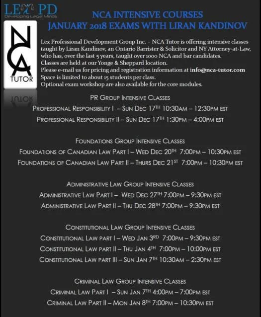 Intensive Classes taught by Liran Kandinov - January 2018 NCA Exams